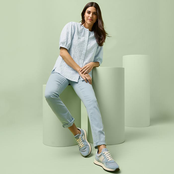 Leicht, flexibel und stilbewusst – so zeigt sich moderner Sommerstyle. Elastische Materialien sorgen für Bewegungsfreiheit, leichte Stoffe für einen frischen Twist und helle Farben für die richtige Portion Easy Chic. Alles wirkt entspannt, aber stilvoll durchdacht – von der fließenden Silhouette bis zur subtilen Farbigkeit. Genau so sieht Sommermode aus, wenn sie Komfort und modisches Feingefühl in Einklang bringt.