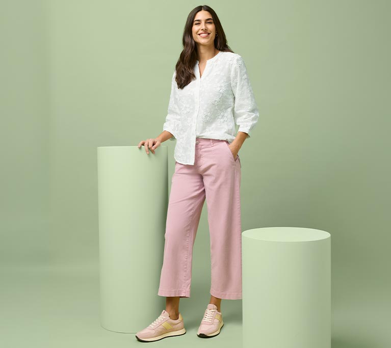 Leicht, flexibel und stilbewusst – so zeigt sich moderner Sommerstyle. Elastische Materialien sorgen für Bewegungsfreiheit, leichte Stoffe für einen frischen Twist und helle Farben für die richtige Portion Easy Chic.