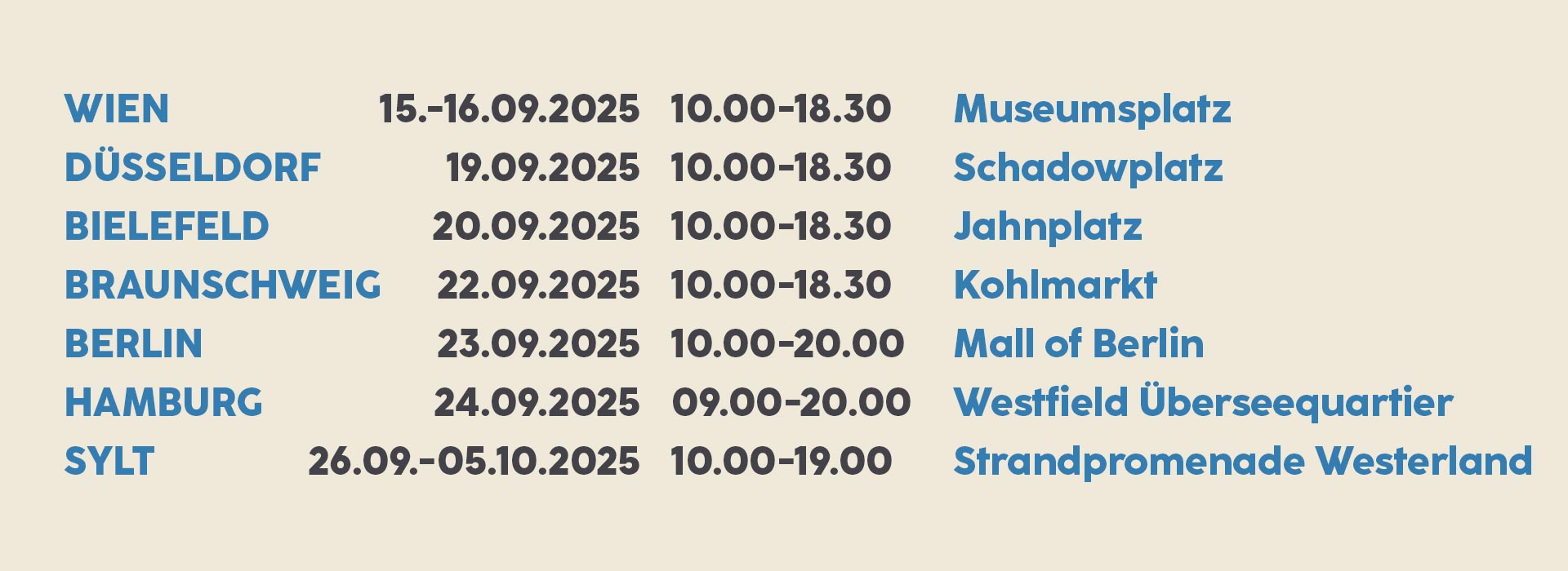 *Nur in den Stores in Wien, Düsseldorf, Bielefeld, Braunschweig, Berlin, Hamburg und Sylt – an Tagen, wo der Truck in der Stadt ist. Online einlösbar mit dem Code „BRAXTOUR2025“ vom 15.09. - 05.10.2025.